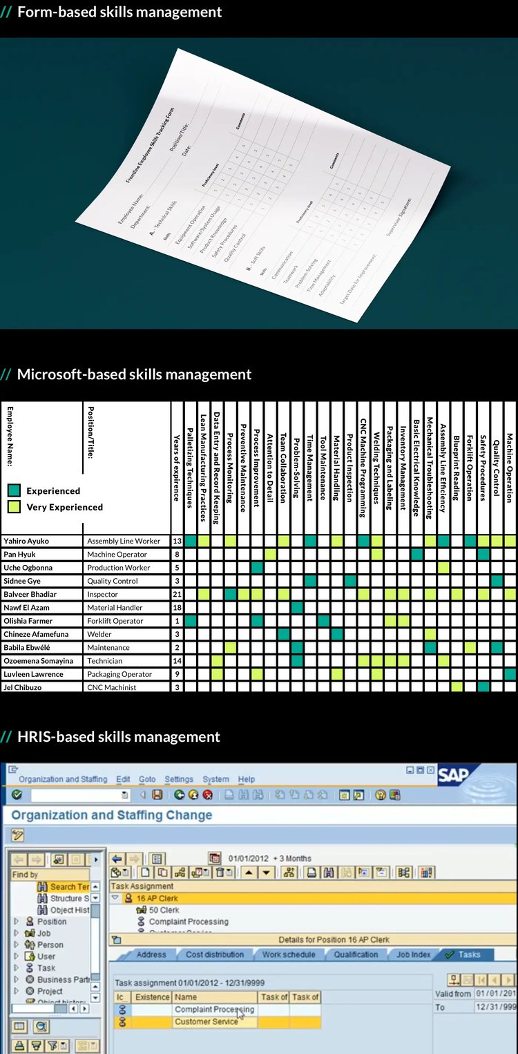 Paper/Form-Based - Paper forms used to track the skills of employees. These are cumbersome and difficult to update.